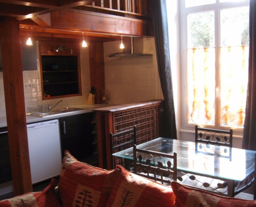 Disponibilités: A partir du 09 décembre 2017 jusqu'au 10 mars 2018 Du 02 au 30 septembre 2018. A partir du 21 octobre 2018. Appartement dans la « Villa Victoria » idéalement situé au cœur d’Aix Les Bains, à 300 m de la gare SNCF et des arrêts de bus, à 150 m de la zone piétonne et des commerces (boutiques, restaurants, cinéma, Casino grand cercle, etc…), à 1,5 km des thermes Chevalley (navette gratuite à 400 m), tennis, golf, piscine, lac du Bourget à moins de 2 km. Place de parking privative. Surface totale de 42m2, pièce à vivre de 27 m2 dont : cuisine équipée (plaques vitrocéramiques, hotte aspirante, four, four micro-onde, cafetière, grille-pain, bouilloire,…) ; espace salon (canapé lits gigognes, TV écran plat, lecteur DVD), salle de bain WC (douche, machine à laver), et chambre en mezzanine de 15 m2 (bureau, 2 lits 90X190). Excellent état (rénovation 2011). Produits ménagers fournis, linge de maison non fourni. Carte d’hôte : gratuité des transports urbains, réduction parking, cinéma, etc….. Taxe de séjour : 0,50 € par jour et par personne. Photos et renseignements sur demande. Location possible pour le week-end, me consulter. Idéal pour 2 personnes, 3 ou 4 personnes possible : Majoration de 50€/semaine par personne supplémentaire ; 90€/ 2 semaines par personne supplémentaire ; 130€/3 semaines par personne supplémentaire. Tarifs 2017 pour 1 ou 2 personnes : Basse saison jusqu'au 31 mars et à partir du 1er novembre (hors vacances de Noël) : *230€ la semaine ou 650€ les 3 semaines curistes. Moyenne saison du 01 avril au 30 juin et du 01 septembre au 31 octobre: *260 euros la semaine ou 740 euros les 3 semaines curistes. Haute saison du 01 juillet au 31 août: *290 euros la semaine ou 830 euros les 3 semaines curistes. Vacances scolaires Noël/Jour de l’an: *290 euros la semaine ou 560 les 2 semaines.
