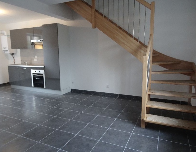 Appartement de type T3, refait entièrement à neuf en 2017, vous offre : - Un grand espace de vie : cuisine équipée ouverte sur salon/salle à manger, - Un WC séparé, - À l'étage : deux chambres avec Velux dernière génération, - Une salle de bain avec baignoire + wc, - Une cave individuelle, - Le chauffage est au gaz individuel, - Un petit espace extérieur en commun avec la copropriété, Situé dans un lieu calme de St Chamond, proche de la campagne comme de la ville. Secteur : Centre nautique Roger Couderc /rue Marcellin Champagnat Arrêt de bus à 100m. Loyer : 580€ + 15€ charges (électricité des communs, entretien co-propriété, taxes ordures ménagères) Libre début juillet (voir mi-juin)