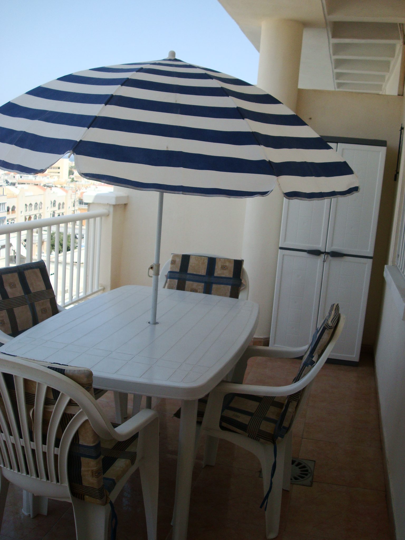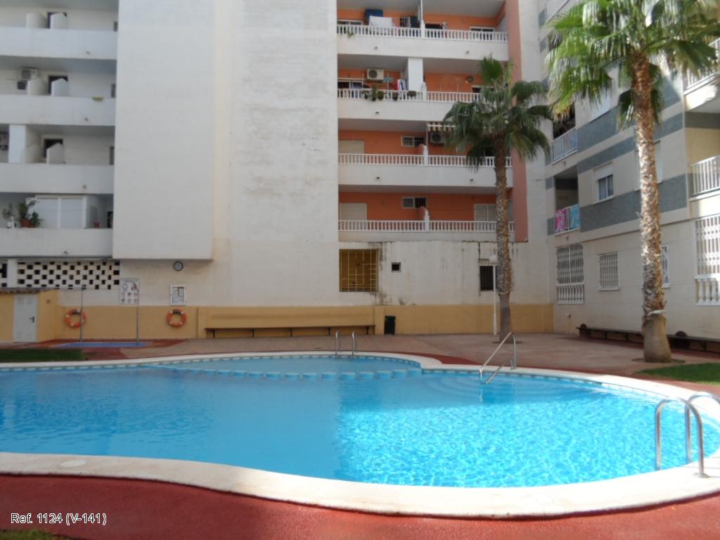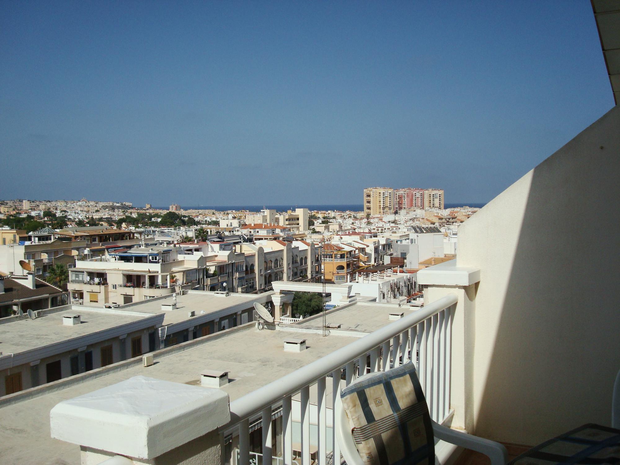 à manger, une cuisine américaine, une terrasse, un grand débarras (pour y ranger vos articles de plages, vélos, planches à voile, valises…) et un parking privés au sous-sol, ainsi que d’une magnifique piscine et d’un solarium. L’appartement se trouve au 5ème et dernier étage et dispose d’une grande terrasse de 12 m² avec vue panoramique sur Torrevieja, et est à 5 minutes de la plage Del Cura et tout près du centre, entouré de tous les types de services, commerces, banques, restaurants, etc… . Convient également pour personnes à mobilité réduite. Les propriétaires vous accueillent sur place et se tiennent à votre disposition au moindre problème. Activités: bowling, pétanque, mini-golf, pédalo, équitation, promenades, spectacles, marché le vendredi et chaque jour dans les environs…. + activités diverses en ville. Prix par semaine, charges comprises: Juillet et août : 400,00 EUR Mai, juin et septembre : 350,00 EUR Reste de l’année : 250,00 EUR sauf vacances de Pâques et de Noël : 300,00 EUR. Draps, serviettes de bain et sèche-cheveux fournis. Nettoyage final : 50,00 EUR. Caution : 150,00 EUR. Parfait pour y passer d’agréables vacances en famille ou pour y passer de plus longues périodes. Prix spécial pour longues périodes, me demander le prix exact car cela dépend de la durée de votre séjour ainsi que des dates (ex : en basse saison, 1 mois = 500,00 EUR, 2 mois = 450,00 EUR par mois, 3 mois et plus = 400,00 EUR par mois). Pour confirmer votre réservation, un acompte de 30% est à payer sur le compte. Le solde est à payer 15 jours avant le 1er jour de location ainsi que la caution de 150,00 EUR. Celle-ci vous sera restituée dans les 7 jours, déduction faite des éventuels dégâts. N’hésitez-pas à me contacter par mail (ou éventuellement au 0034/685291586) pour plus de renseignements