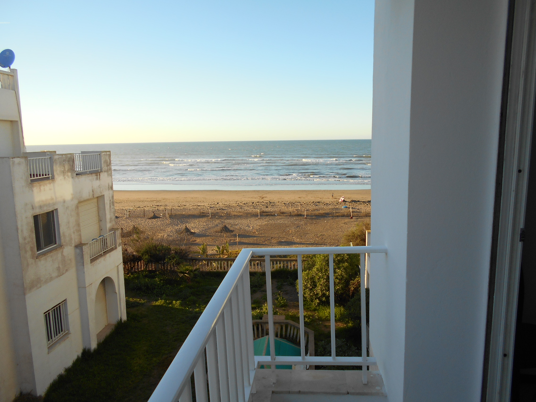 Un bel appartement de 104m² dans résidence balnéaire front de mer, sur plage ain diab situé dans un emplacement géographique privilégié à15mn de Casablanca .Contenance: salon avec cheminée et terrasse vue latérale de la mer, une cuisine équipée, une chambre parentale avec SDB et balcon , une chambre enfant avec balcon donnant sur mer. L'appartement est au 2 ème et dernier étage, possède 2 façades opposées ,bien ensoleillé matin et après- midi. La terrasse est accéssible , un garage au sous sol ,un box et une grande piscine.Prix: DH 1850000.négociable.Pour visiter, contactez Immo Borj Al Arab.