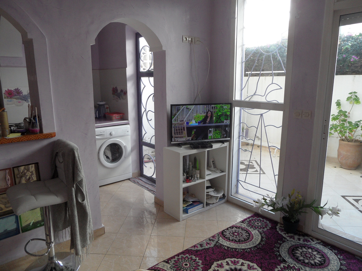 Bel appartement meublé au RDC d’une résidence calme et sécurisée d’une surface de 64 mètres carrés au quartier ALHOUDA. Cet appartement se compose de : chambre avec salle de bains, salon, cuisine, une grande terrasse, une place de voiture au sous-sol et box. Quartier ALHOUDA est proche de toute commodité : centre commercial, écoles, administrations et à 10 minutes du centre- ville. REF:AAV52.