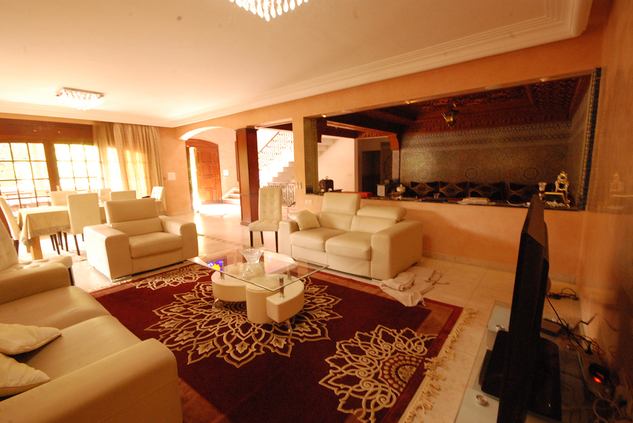 A vendre : Spenldide Villa de 608 m² au sol, moderne , entourée de verdure , calme , dans un quartier sécurisé, Quartier (RMEL 2) sur Grand Boulevard, très beau jardin arboré avec hauteur de presque 6m, belle piscine, 5 chambres , 3 SDB , 4 WC , Cuisine équipée, belle distribution à l'intérieur. Villa bien entretenue, un havre de paix, à voir absolument.