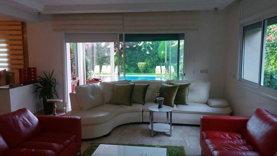 A vendre à El Jadida à proximité de la plage dans une résidence sécurisée 24 heures/24 heures , une coquette villa très bien finie et bien ensoleillé d'une superficie habitable de 600 mètres carrées,bâtie sur un terrain de 520 mètres carrées de quatre façades et de trois niveaux: Le sous-sol est composé de deux salons,une cuisine,une salle de bain,un bain(hammam)traditionnel,un coin pour les débarras et une petite salle de sport. Le rez de chaussée est composé de deux salons qui donnent sur la piscine et sur le jardin,un séjour+une jolie cheminée,une salle de bain,une grande cuisine équipée+salle à manger. Le premier étage est composé d'une salle de bain de quatre chambres avec placards dont deux chambres avec placards+salles de bain +balcons Tél: 0663425091 OU 0648365485