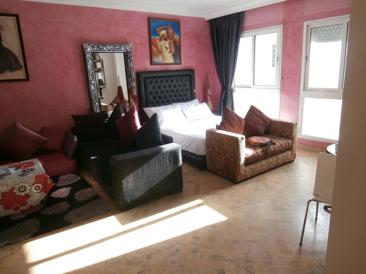 Studio pour location vacance au centre de Casablanca Se compose d’une chambre, douche, salon, climatisation, machine à café, bien sécurisé, réfrigérateur, cuisine bien équipé, ascenseur, connexion internet, propreté … N’hésitez pas de nous-contactez si vous avez des questions !!