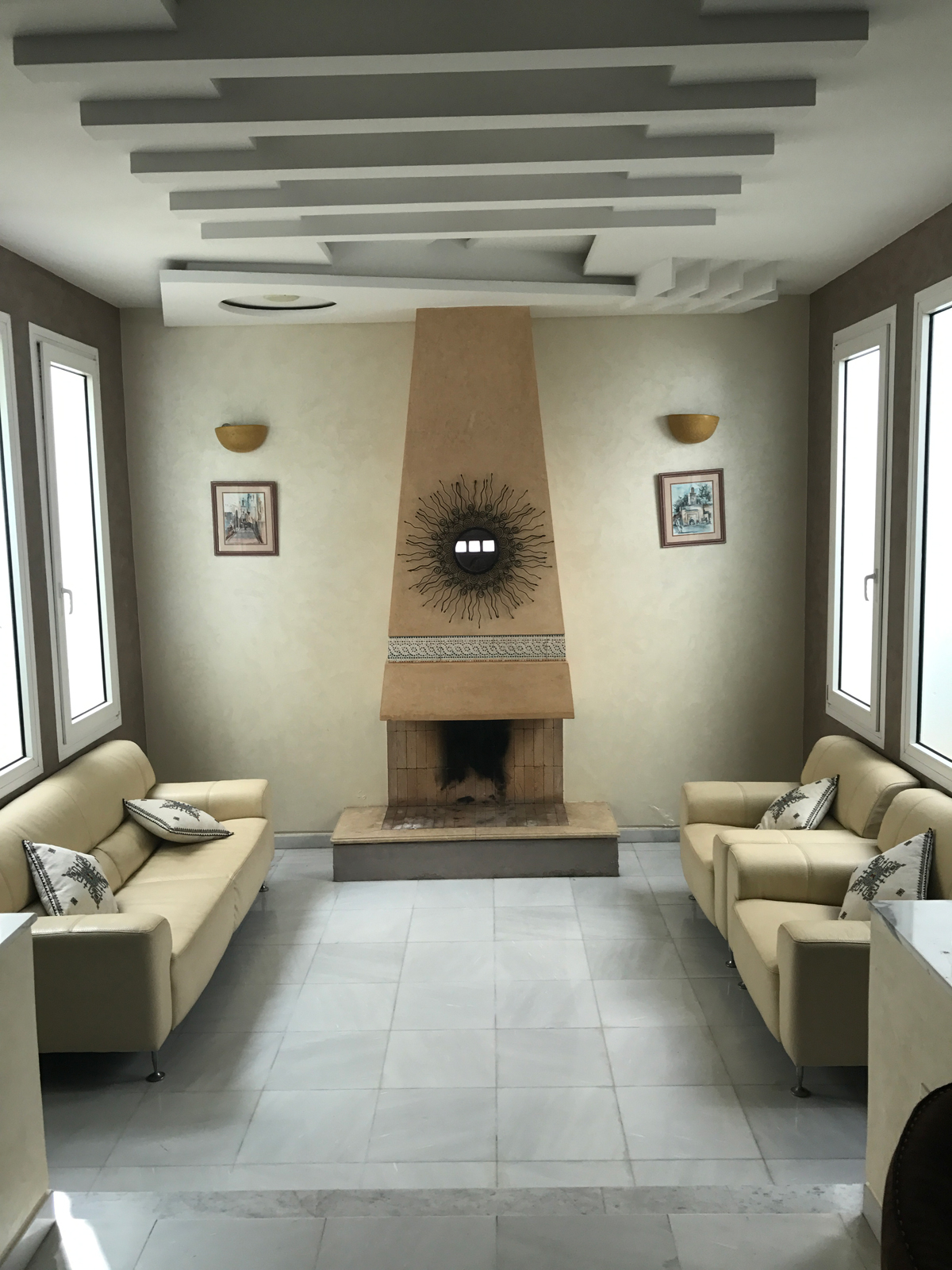 Très belle villa d’architecte de 416 mètres carrés habitable sur un terrain de 180 mètres carrés situé dans un quartier calme et recherché, à 5 minutes du cœur d’Agadir. Cette villa se compose de 4 niveaux : sous-sol : une grande cuisine équipée, une chambre, coin à manger, hammam et un jardin. RDC : salon, séjour, salle à manger et un salon chemine. 1er étage : deux grandes chambres, une suite parental, salle de bains et toilette. 2eme étage : suite isolée, balcon et terrasse. Quartier EL MENZEH est proche de toute commodité. REF:VAV18.