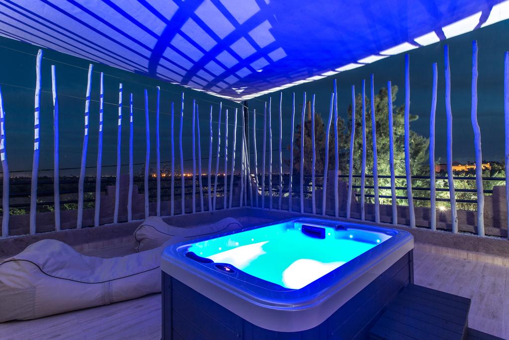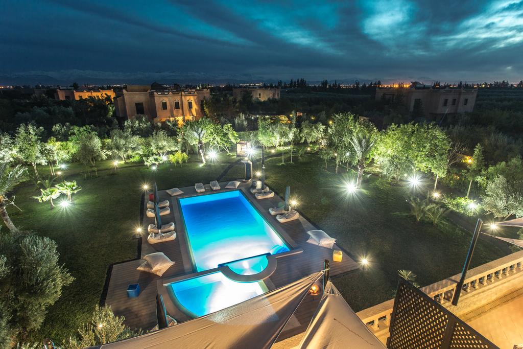 La villa luxe exclusive guest house & spa est un lieu magique niché au coeur d’une oliveraie offrant une vue panoramique sur les cimes enneigées de l’atlas. son style néo-arabo-andalou mêle à merveille l’authenticité marocaine et le style moderne, offrant ainsi à nos visiteurs une expérience originale pour découvrir l’art et le raffinement marocain. la villa est construite sur un terrain d’un hectare de superficie et dotée de six luxuriantes et spacieuses suites. la propriété est dotée de tout le confort d’un hôtel de luxe sur 1000 m2 sur un magnifique terrain d'un hectare de superficie. relevé d'un clin d'oeil de tradition, chacune des suites est dotée d’une généreuse salle de bain, d’un grand dressing, d’une terrasse et d’un balcon. les suites s’articulent autour de six thèmes : the marocaine, the recto, the indienne avec jacuzzi privé, the russe, the africaine et the française. la villa dispose d’un restaurant, d'un bar intérieur et extérieur, d’une grande piscine (16m x 8m) avec jacuzzi, d’un grand barbecue, mais également d’un spa complet (the namasté) (jacuzzi chauffé, hammam, sauna et salle de massage) donnant sur un jardin andalou. la villa exclusive guest house & spa offre à ses clients tout le confort d'un hébérgement de luxe : - service conciergerie à la demande - télédistribution dans toutes les suites - téléphone dans toutes les suites - climatisation réversible anti-moustiques de dernière génération - room service - restauration 24h/24 - bar lounge - fumoir - massages relaxant et kinésithérapeutique - cuisine bio à base de légumes du potager