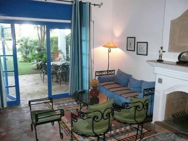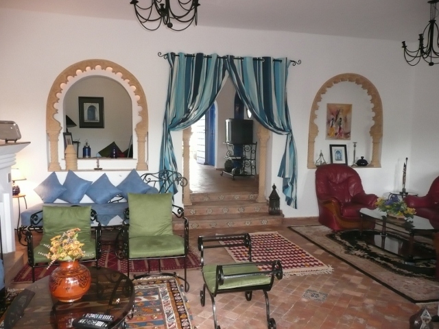 Charmante villa à Bouznika Bay entre golf et plage A Bouznika Bay, cette villa se situe dans une belle résidence fermée, très calme avec sécurité 24/7, terrains de sport, beaucoup d'espaces verts très bien tenus ainsi qu'un magnifique parcours de golf 9 trous. A moins de 50m d’une plage longue de près de 5 km, elle bénéficie d’un excellent emplacement puisqu'elle donne directement sur le golf et sur une rivière de 30m de large alimentée avec l'eau de mer. Sur 2 niveaux (R+1), la villa de style andalou est charmante et spacieuse avec une décoration harmonieuse. La résidence n'est pas surchargée de monde toute l’année et surtout de septembre à juin. La région est prisée des amateurs de golf. Vous pourrez pratiquer diverses activités dans les environs, comme la nage, l'équitation, le vélo, la marche, le footing et la pêche. Le site se trouve à 35 km de Rabat, 55 km de Casablanca. En plus des commerces locaux sur place et dans la ville de Bouznika, vous avez 2 Hyper-marchés à proximité respectivement à 20 et 35 km.L'aéroport de Rabat-Salé, le plus proche, se trouve à 45 km de l'établissement et celui de Casablanca-Nouaceur à 70 km environ RDC : Double salon avec cheminée et grande terrasse donnant sur un jardin privatif coté golf, une salle à manger, salle d’eau, cuisine équipée, buanderie et chambre pour personnel avec salle d’eau. ETAGE : une chambre parentale avec placards, salle de bain et terrasse donnant sur le golf, 2 chambres et salle de bain. Tel : +212661438543