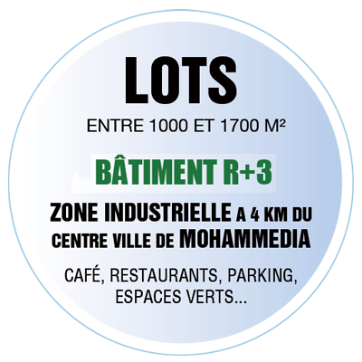 Parc industriel Mansouria Des lots à partir de 1000m² R+3 où vous pouvez construire à votre rythme sans restrictions votre entreprise Un environnement de qualité avec des espaces verts, des services de restauration, de parking et de transport. • Accès direct par la sortie d’autoroute Mohammedia Est • Réseau électrique souterrain • Eau potable en pvc haute pression • Réseau anti-incendie normalisé • Réseau téléphonique en câble enterré • Eclairage performant